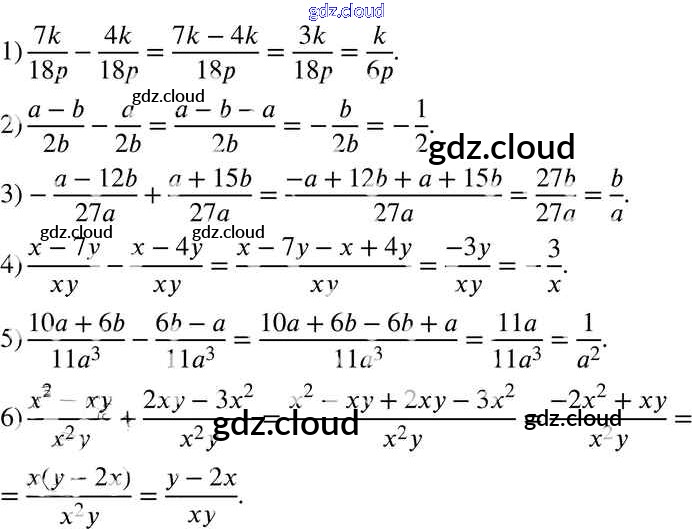 §3. Сложение и вычитание рациональных дробей с одинаковыми знаменателями Ответы к Главе 1. Рациональные выражения по Алгебре 8 класс Учебник Мерзляк Алгоритм успеха Вентана-граф
