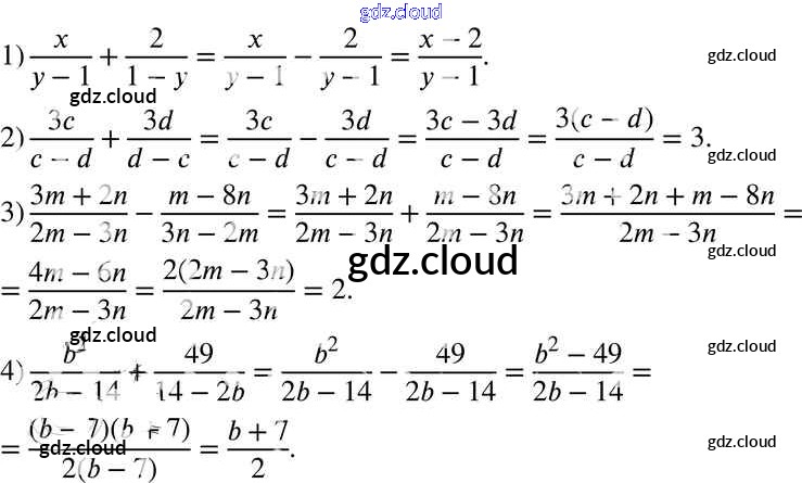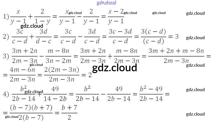 §3. Сложение и вычитание рациональных дробей с одинаковыми знаменателями Ответы к Главе 1. Рациональные выражения по Алгебре 8 класс Учебник Мерзляк Алгоритм успеха Вентана-граф