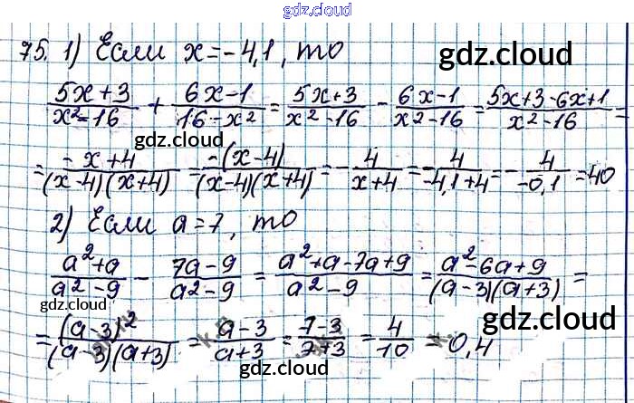 Ответ на задание 75 Учебник Алгебра за 8 (восьмой) класс Мерзляк, Полонский, Якир Алгоритм успеха 2016