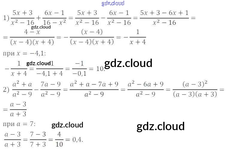 §3. Сложение и вычитание рациональных дробей с одинаковыми знаменателями Ответы к Главе 1. Рациональные выражения по Алгебре 8 класс Учебник Мерзляк Алгоритм успеха Вентана-граф