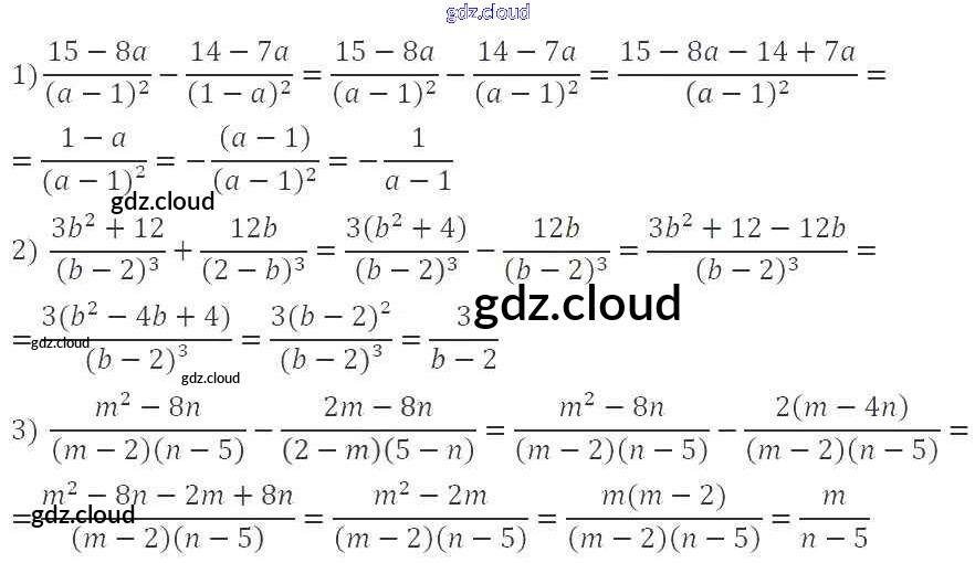 §3. Сложение и вычитание рациональных дробей с одинаковыми знаменателями Ответы к Главе 1. Рациональные выражения по Алгебре 8 класс Учебник Мерзляк Алгоритм успеха Вентана-граф