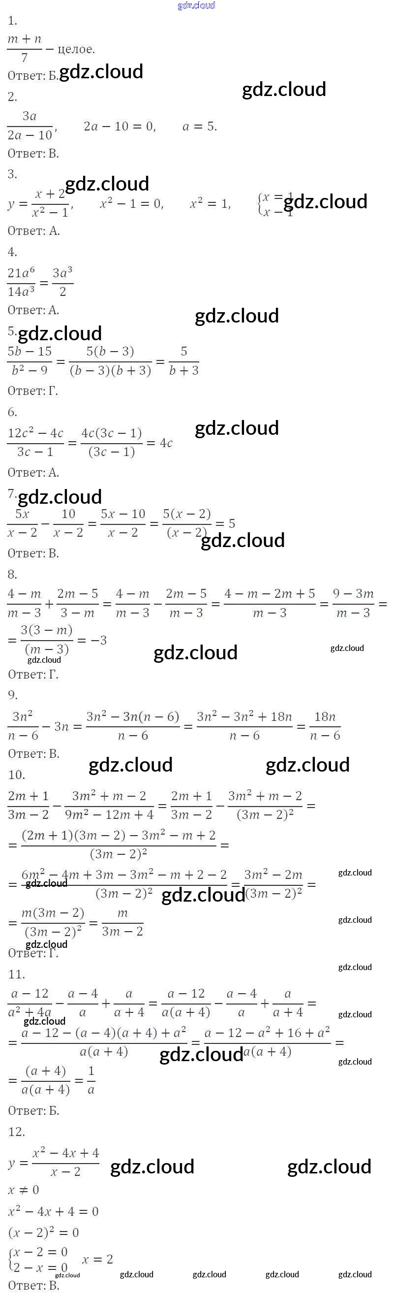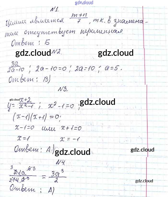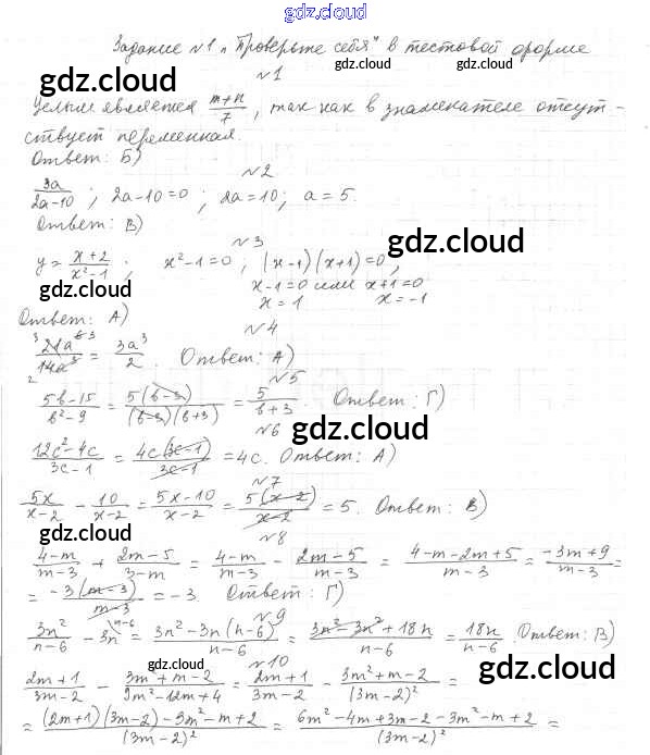 Проверь себя №1 Ответы к Главе 1. Рациональные выражения по Алгебре 8 класс Учебник Мерзляк Алгоритм успеха Вентана-граф