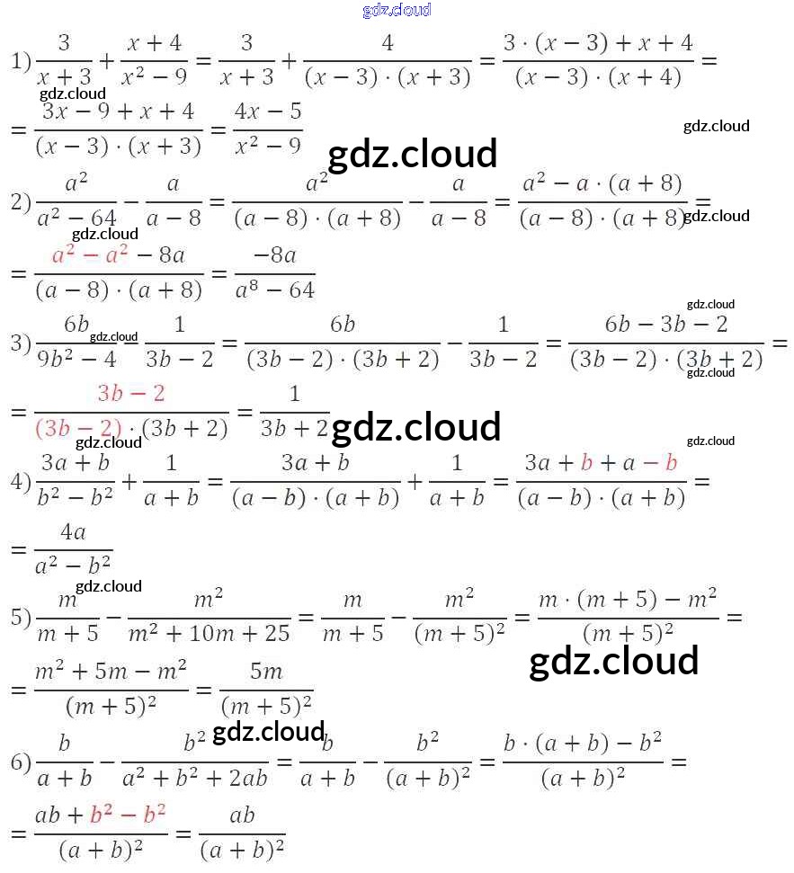 §4. Сложение и вычитание рациональных дробей с разными знаменателями Ответы к Главе 1. Рациональные выражения по Алгебре 8 класс Учебник Мерзляк Алгоритм успеха Вентана-граф