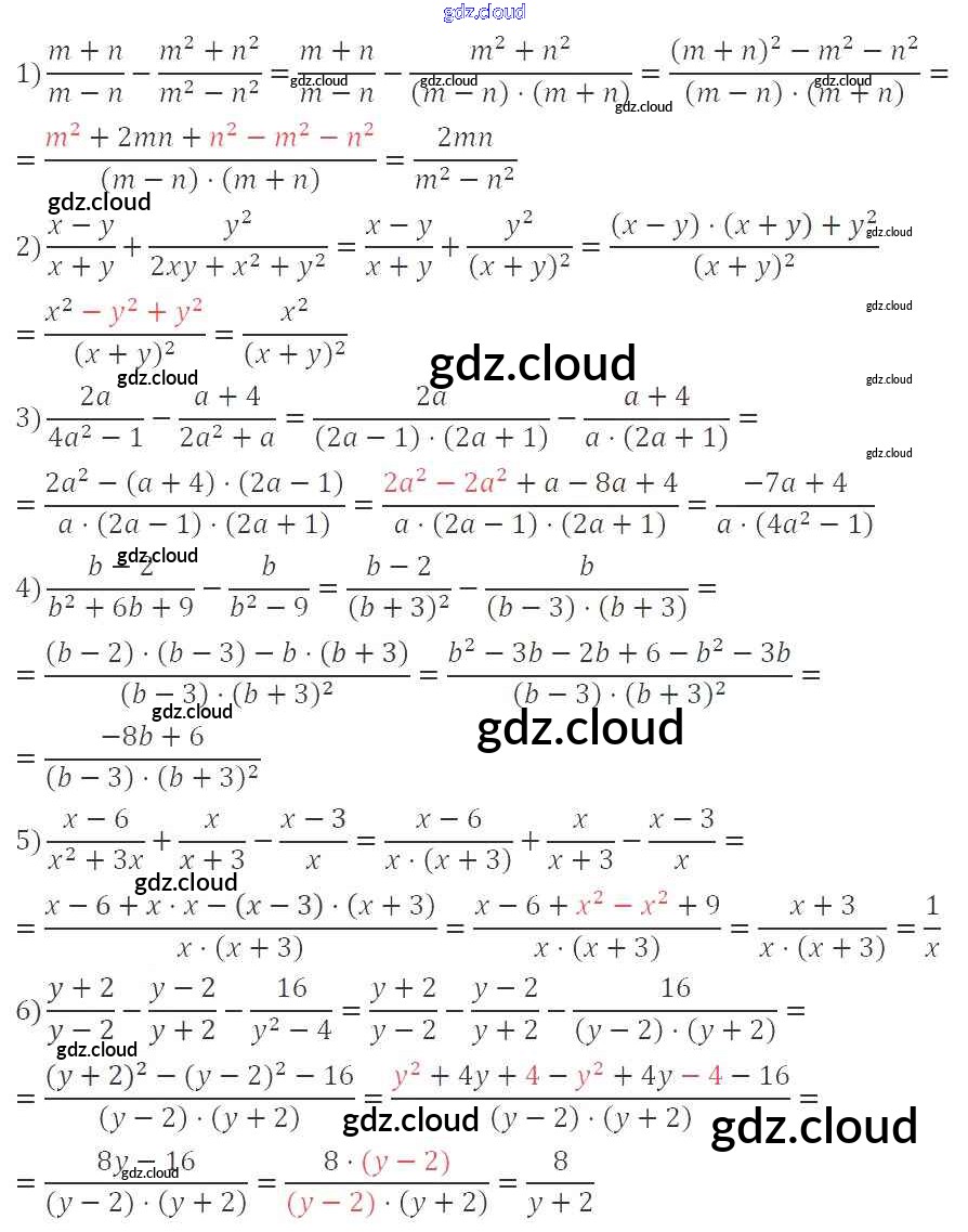 §4. Сложение и вычитание рациональных дробей с разными знаменателями Ответы к Главе 1. Рациональные выражения по Алгебре 8 класс Учебник Мерзляк Алгоритм успеха Вентана-граф