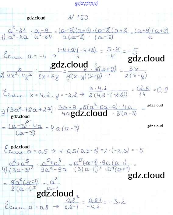 Ответ на задание 160 Учебник Алгебра за 8 (восьмой) класс Мерзляк, Полонский, Якир Алгоритм успеха 2016