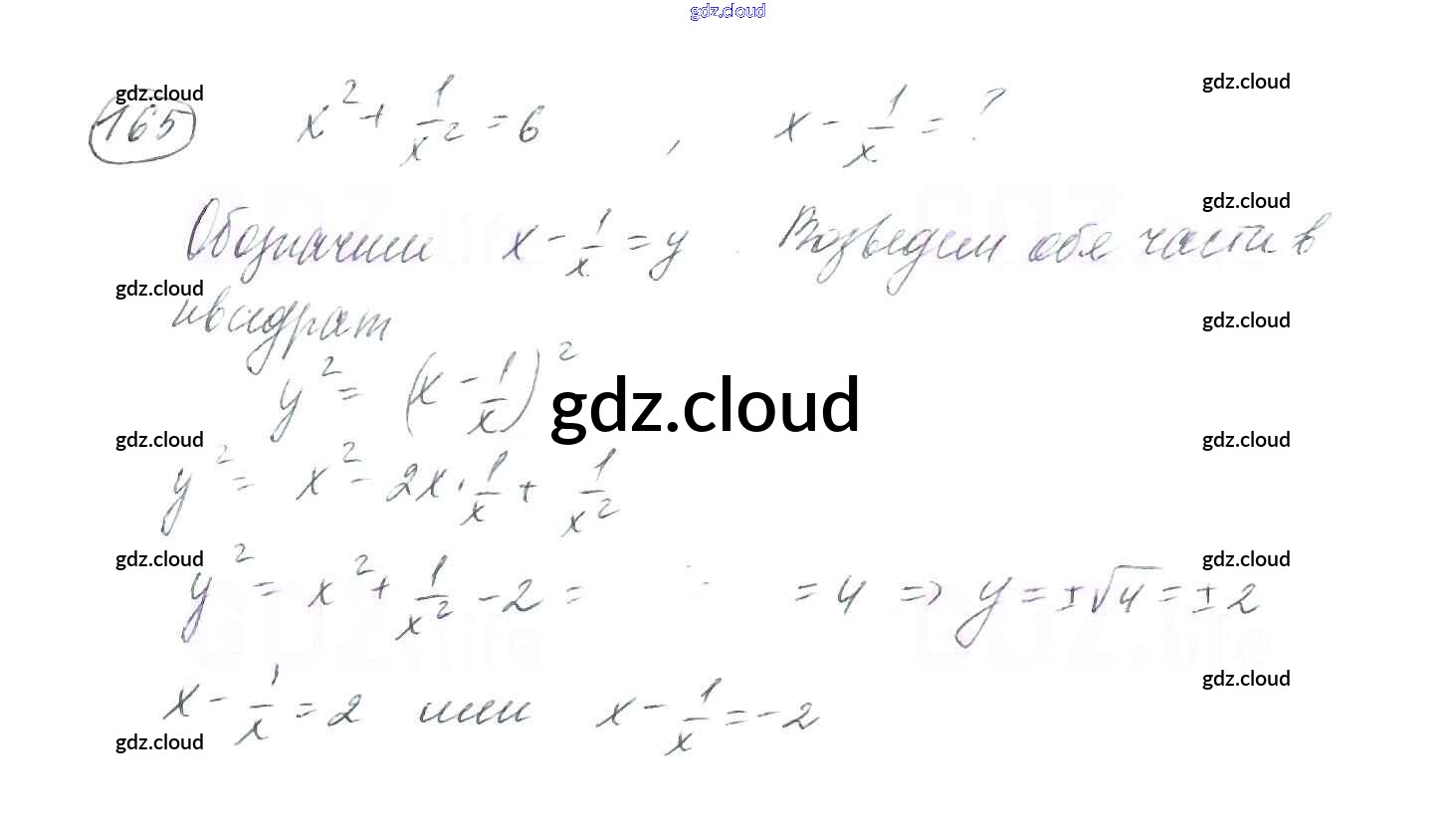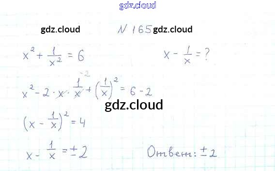 Ответ на задание 165 Учебник Алгебра за 8 (восьмой) класс Мерзляк, Полонский, Якир Алгоритм успеха 2016