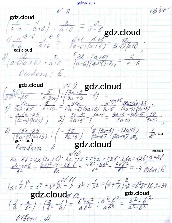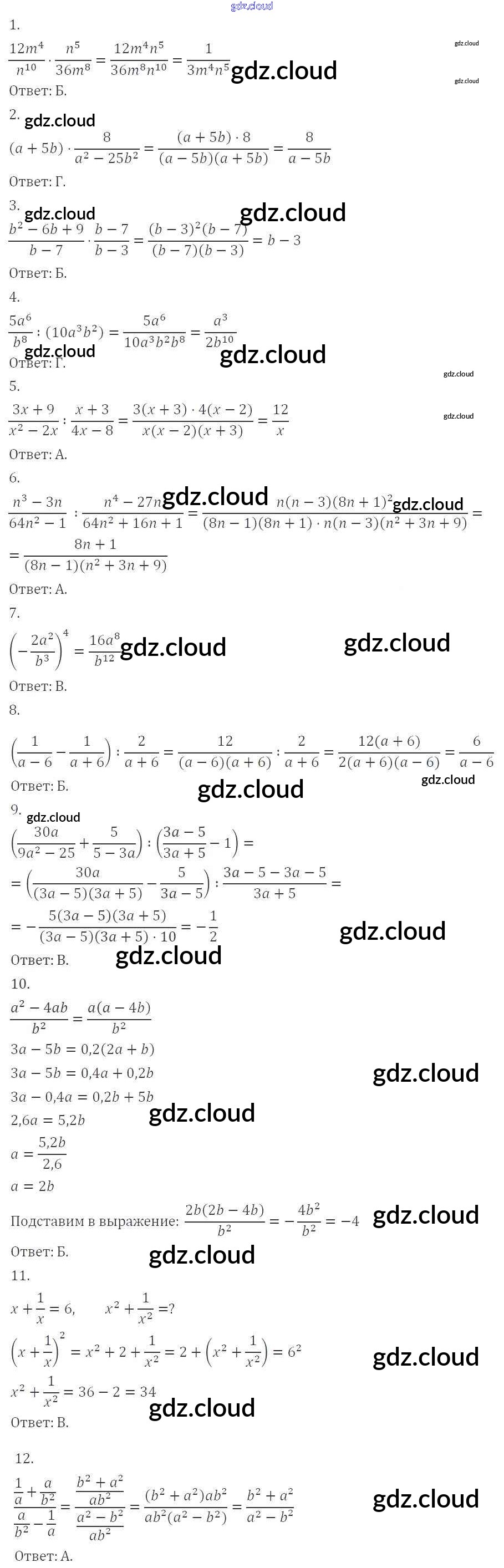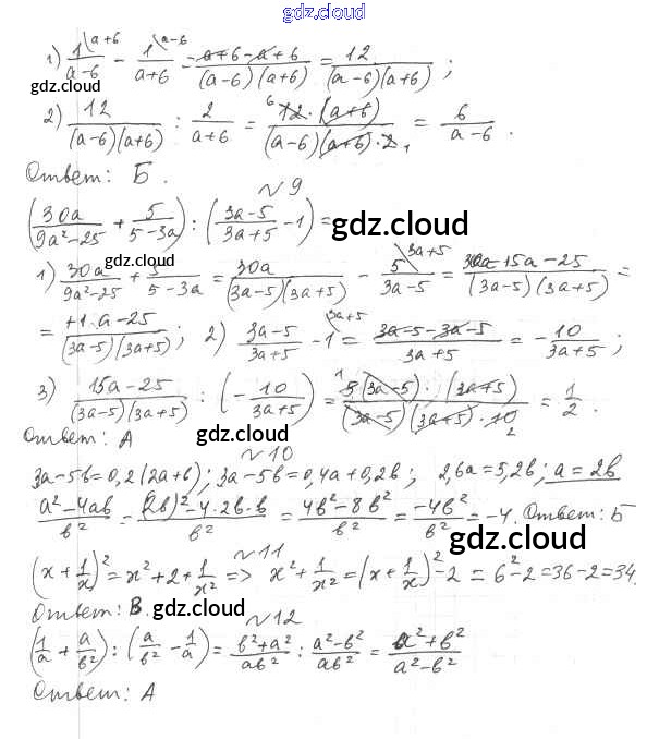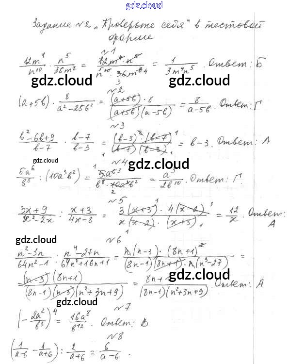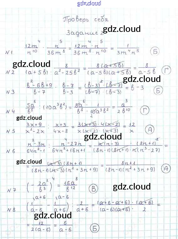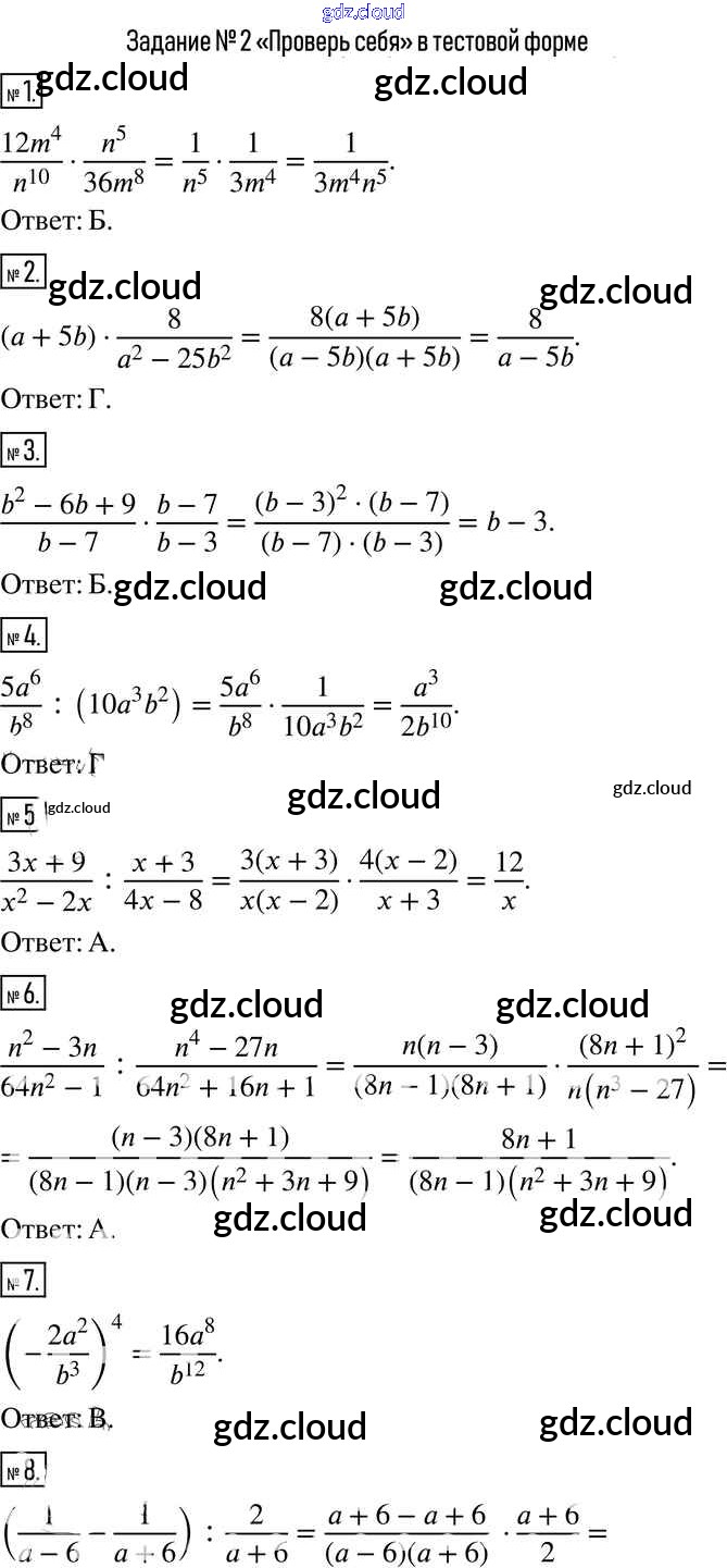 Проверь себя №2 Ответы к Главе 1. Рациональные выражения по Алгебре 8 класс Учебник Мерзляк Алгоритм успеха Вентана-граф