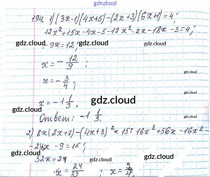 Ответ на задание 194 Учебник Алгебра за 8 (восьмой) класс Мерзляк, Полонский, Якир Алгоритм успеха 2016