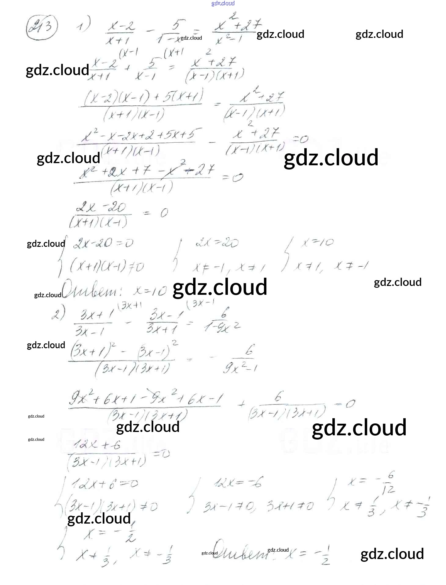 Ответ на задание 213 Учебник Алгебра за 8 (восьмой) класс Мерзляк, Полонский, Якир Алгоритм успеха 2016