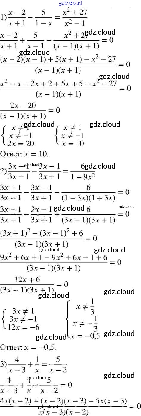 §7. Равносильные уравнения. Рациональные уравнения Ответы к Главе 1. Рациональные выражения по Алгебре 8 класс Учебник Мерзляк Алгоритм успеха Вентана-граф
