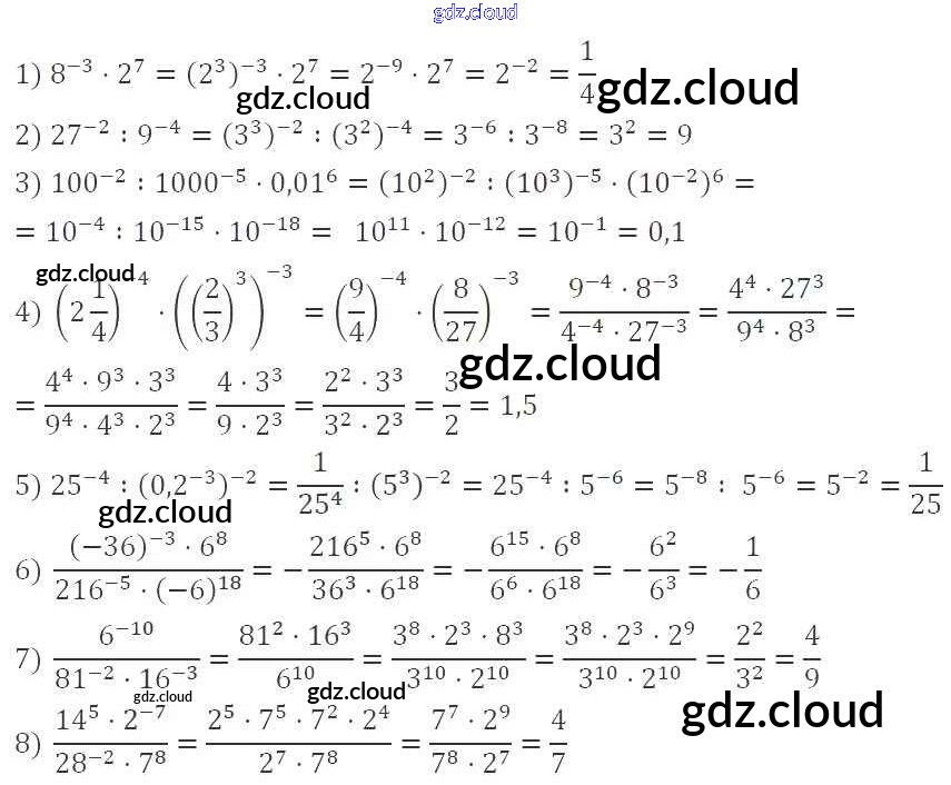 §9. Свойства степени с целым показателем Ответы к Главе 1. Рациональные выражения по Алгебре 8 класс Учебник Мерзляк Алгоритм успеха Вентана-граф