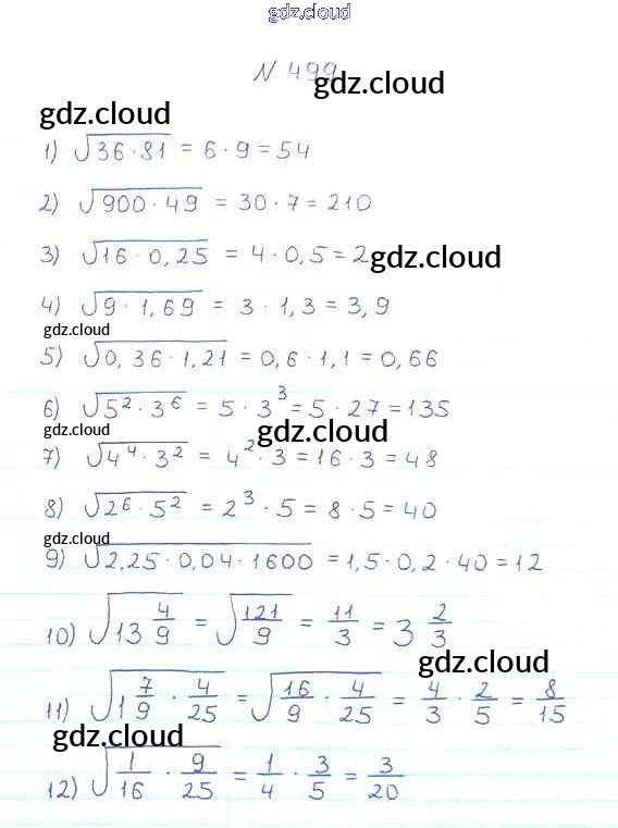 Ответ на задание 499 Учебник Алгебра за 8 (восьмой) класс Мерзляк, Полонский, Якир Алгоритм успеха 2016
