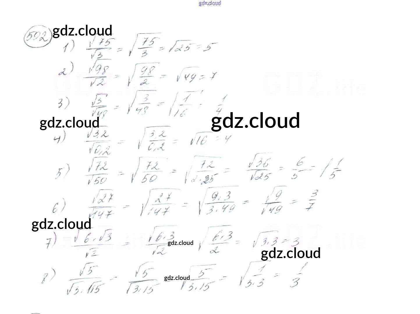 Ответ на задание 502 Учебник Алгебра за 8 (восьмой) класс Мерзляк, Полонский, Якир Алгоритм успеха 2016