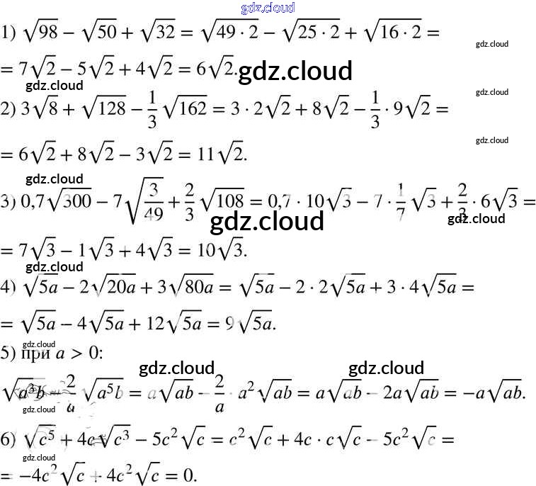 §17. Тождественные преобразования выражений, содержащих арифметические квадратные корни Ответы к Главе 2. Квадратные корни. Действительные числа по Алгебре 8 класс Учебник Мерзляк Алгоритм успеха Вентана-граф