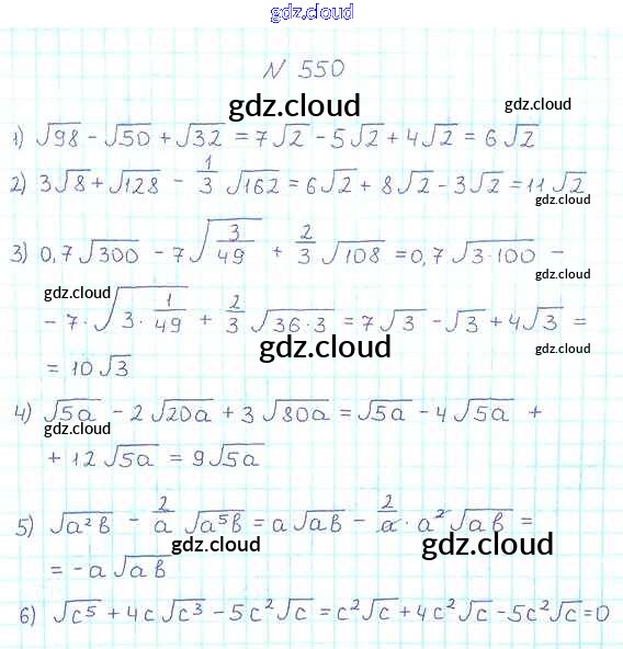Ответ на задание 550 Учебник Алгебра за 8 (восьмой) класс Мерзляк, Полонский, Якир Алгоритм успеха 2016