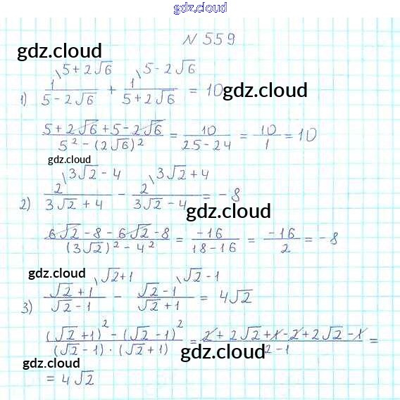 Ответ на задание 559 Учебник Алгебра за 8 (восьмой) класс Мерзляк, Полонский, Якир Алгоритм успеха 2016