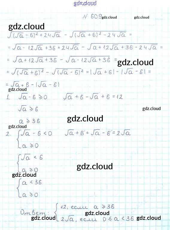 Ответ на задание 609 Учебник Алгебра за 8 (восьмой) класс Мерзляк, Полонский, Якир Алгоритм успеха 2016