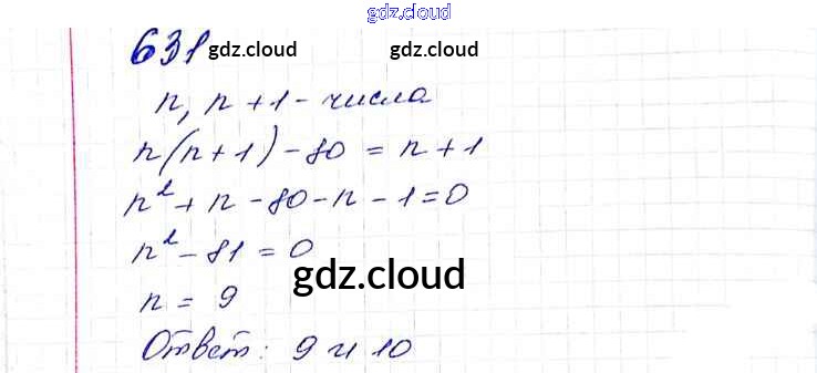 Ответ на задание 631 Учебник Алгебра за 8 (восьмой) класс Мерзляк, Полонский, Якир Алгоритм успеха 2016