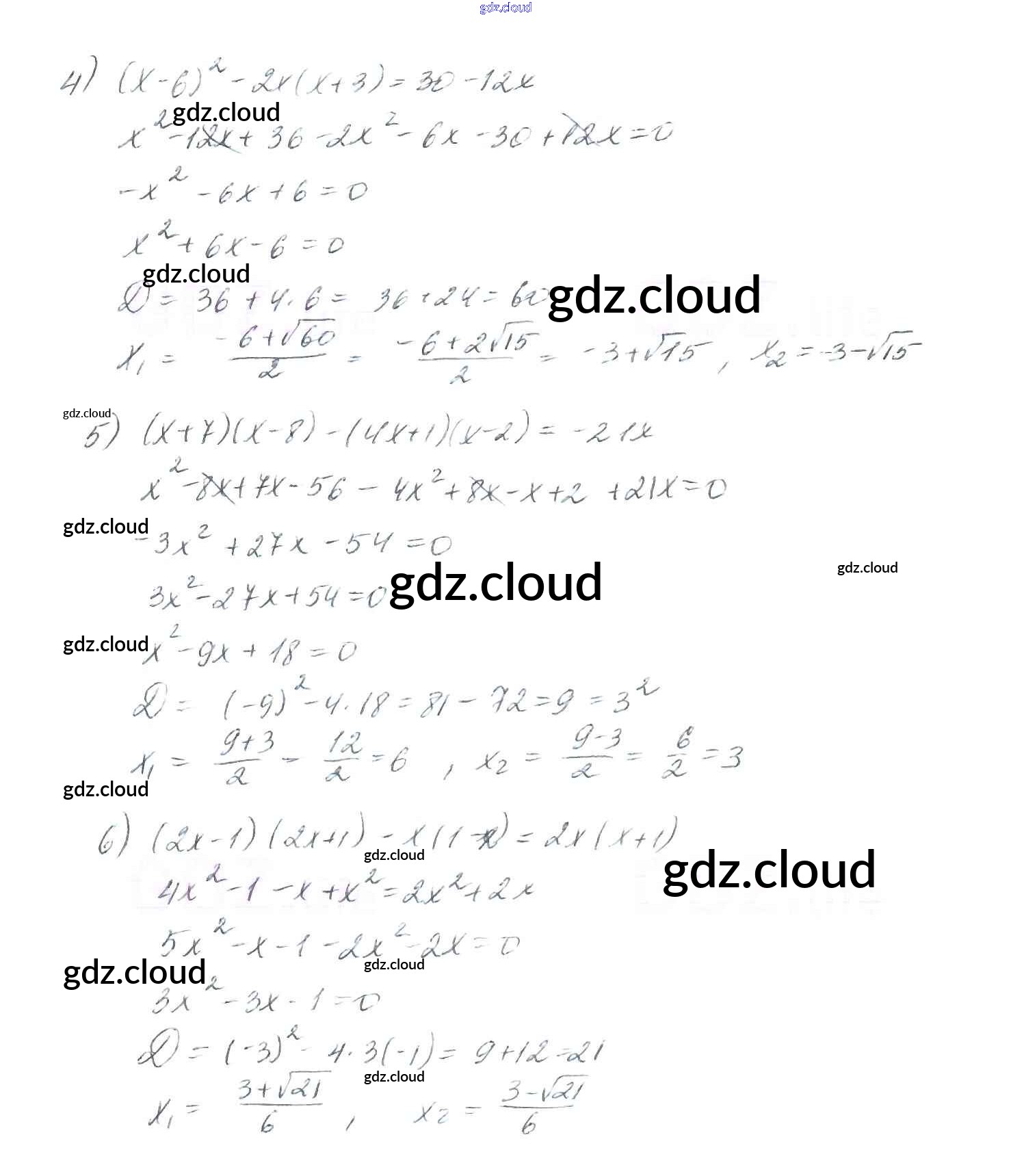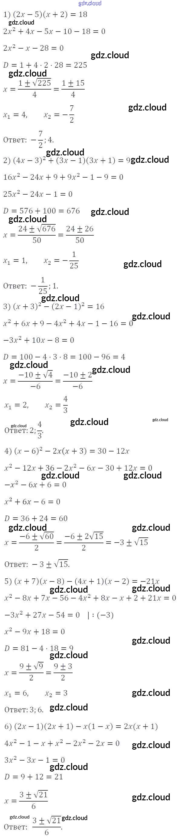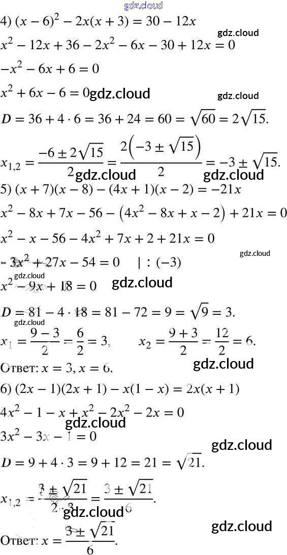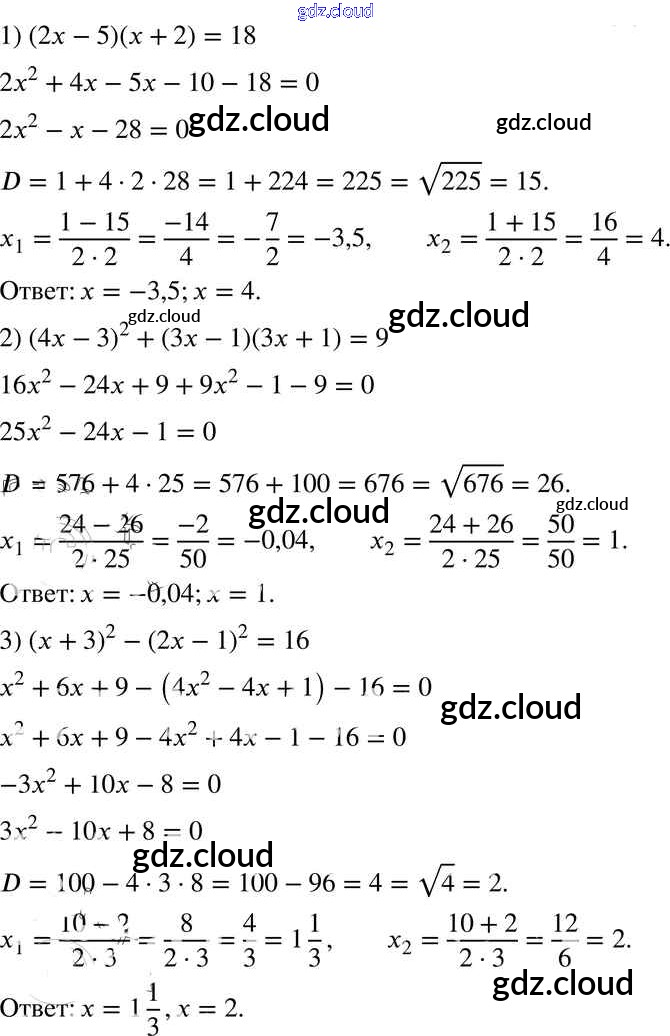 §20. Формула корней квадратного уравнения Ответы к Главе 3. Квадратные уравнения по Алгебре 8 класс Учебник Мерзляк Алгоритм успеха Вентана-граф