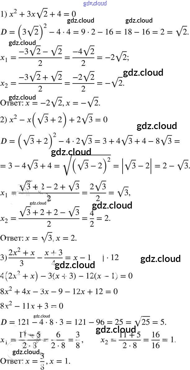 §20. Формула корней квадратного уравнения Ответы к Главе 3. Квадратные уравнения по Алгебре 8 класс Учебник Мерзляк Алгоритм успеха Вентана-граф