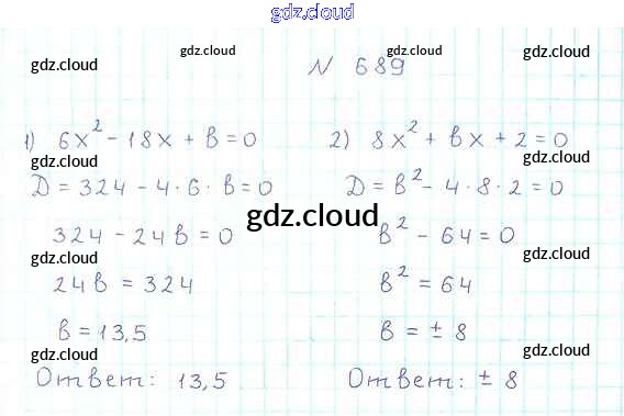 Ответ на задание 689 Учебник Алгебра за 8 (восьмой) класс Мерзляк, Полонский, Якир Алгоритм успеха 2016