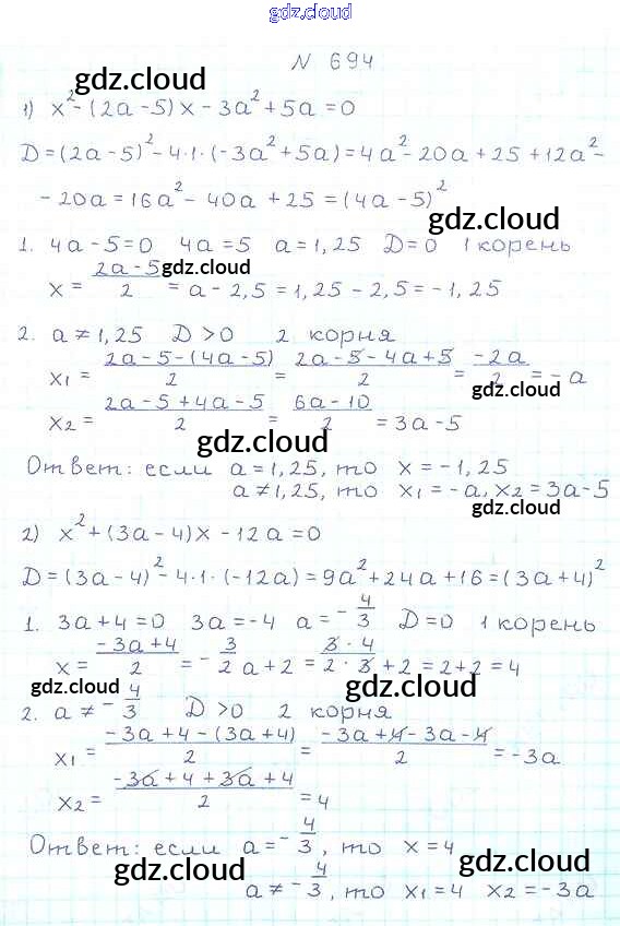 Ответ на задание 694 Учебник Алгебра за 8 (восьмой) класс Мерзляк, Полонский, Якир Алгоритм успеха 2016