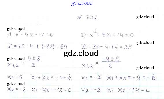 Ответ на задание 702 Учебник Алгебра за 8 (восьмой) класс Мерзляк, Полонский, Якир Алгоритм успеха 2016