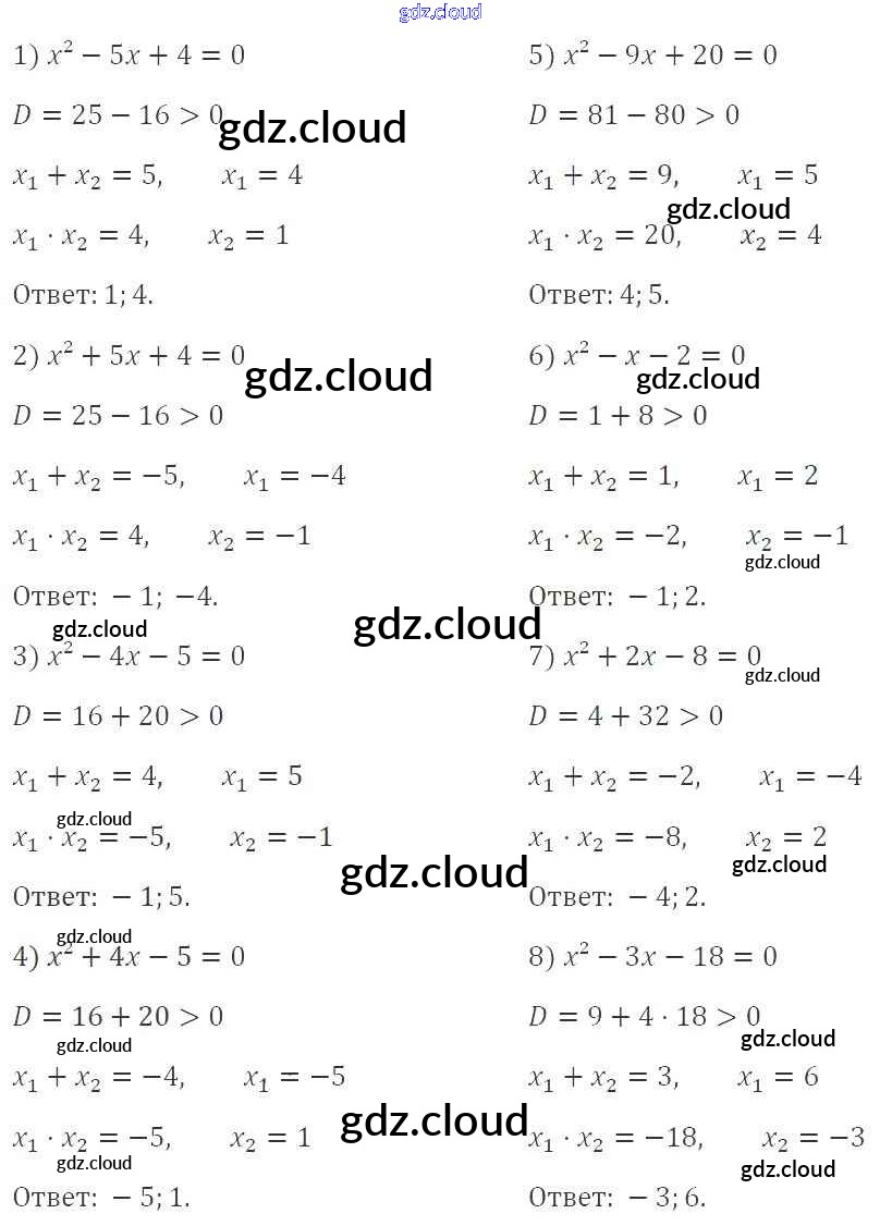 §21. Теорема Виета Ответы к Главе 3. Квадратные уравнения по Алгебре 8 класс Учебник Мерзляк Алгоритм успеха Вентана-граф