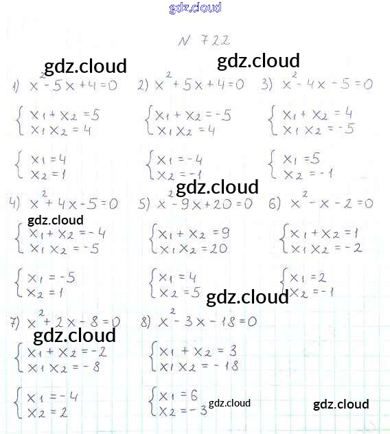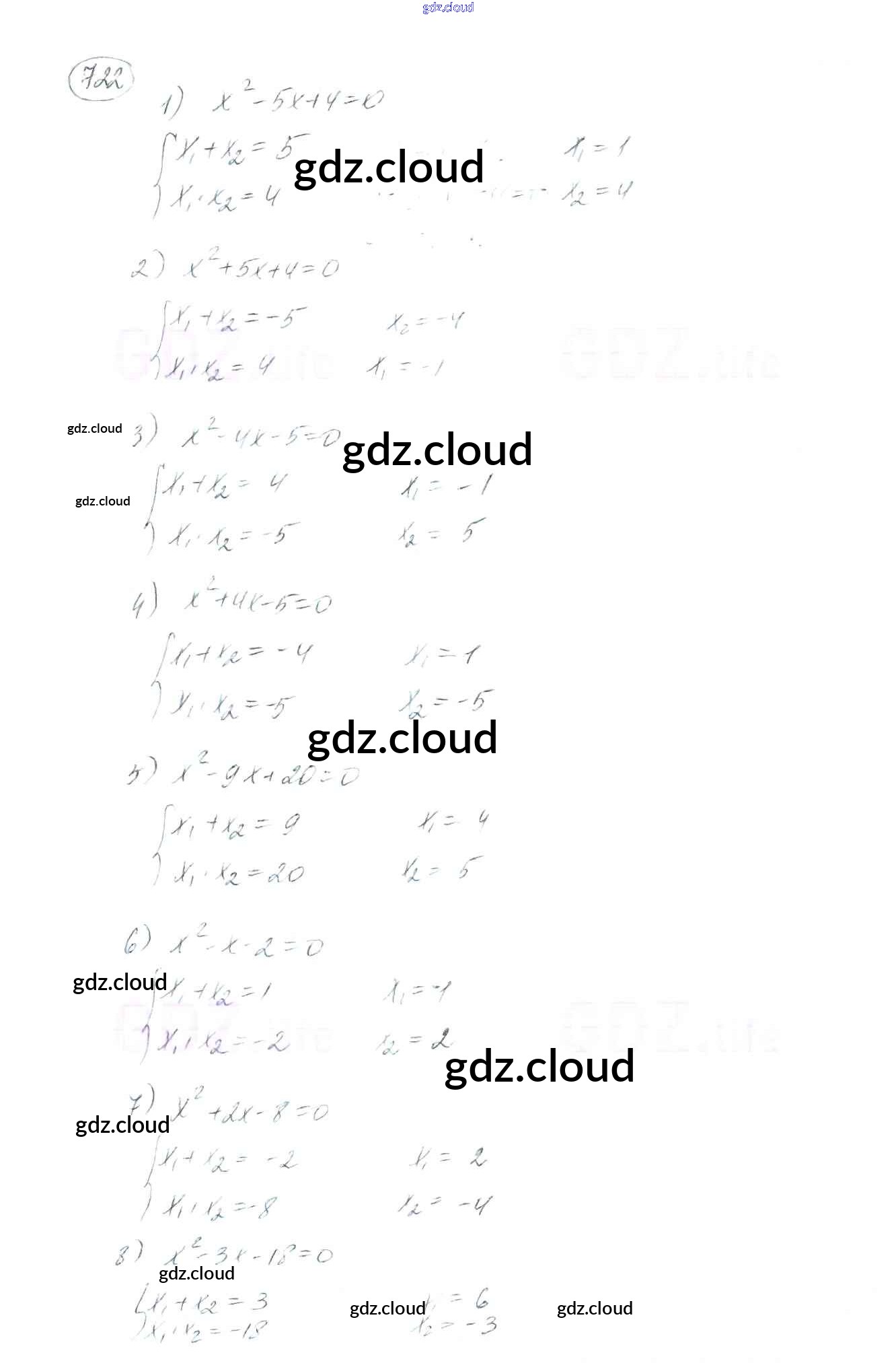 Ответ на задание 722 Учебник Алгебра за 8 (восьмой) класс Мерзляк, Полонский, Якир Алгоритм успеха 2016