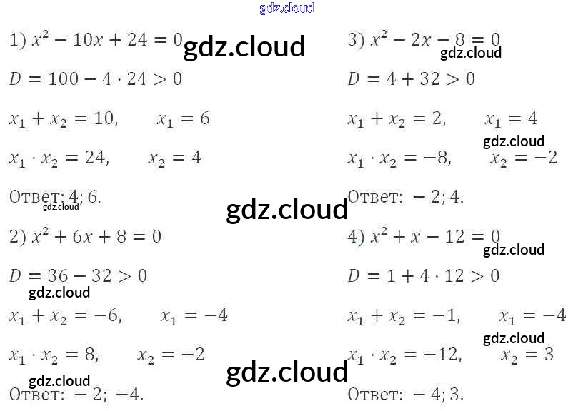 §21. Теорема Виета Ответы к Главе 3. Квадратные уравнения по Алгебре 8 класс Учебник Мерзляк Алгоритм успеха Вентана-граф