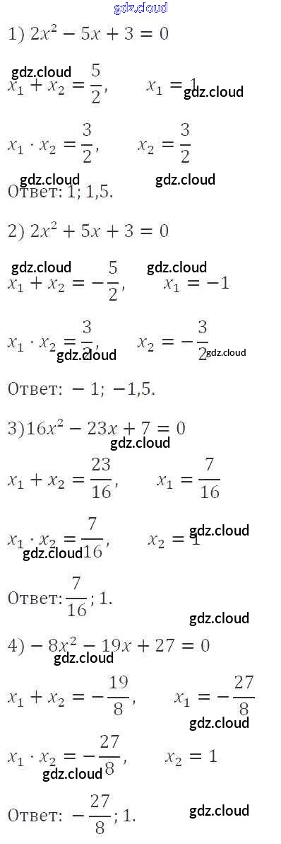 §21. Теорема Виета Ответы к Главе 3. Квадратные уравнения по Алгебре 8 класс Учебник Мерзляк Алгоритм успеха Вентана-граф