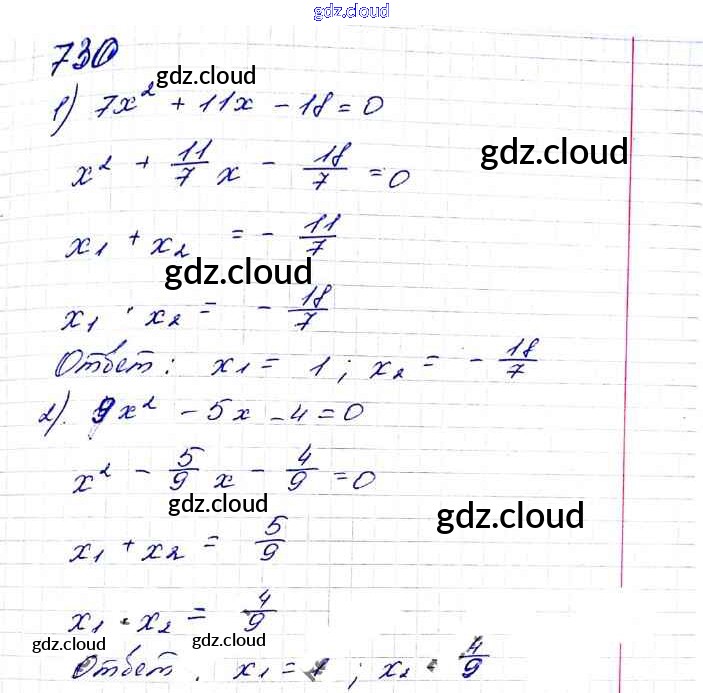 Ответ на задание 730 Учебник Алгебра за 8 (восьмой) класс Мерзляк, Полонский, Якир Алгоритм успеха 2016