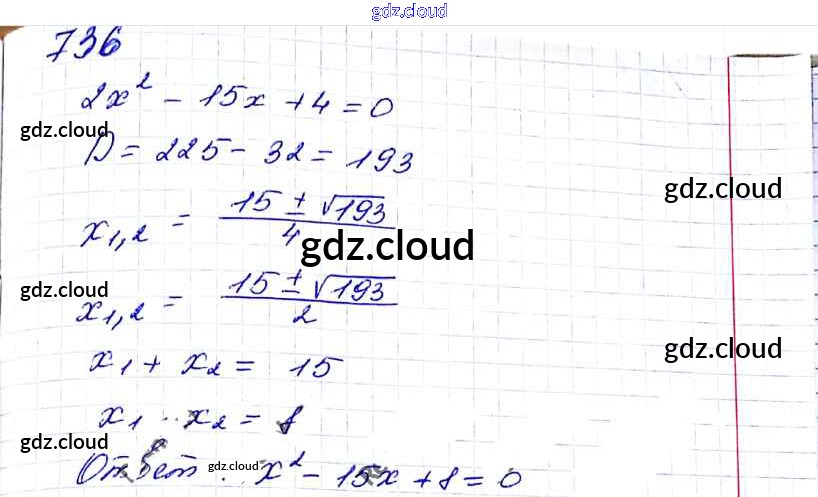 Ответ на задание 736 Учебник Алгебра за 8 (восьмой) класс Мерзляк, Полонский, Якир Алгоритм успеха 2016