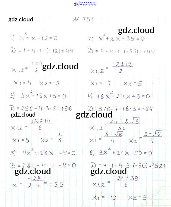 Ответ на задание 751 Учебник Алгебра за 8 (восьмой) класс Мерзляк, Полонский, Якир Алгоритм успеха 2016