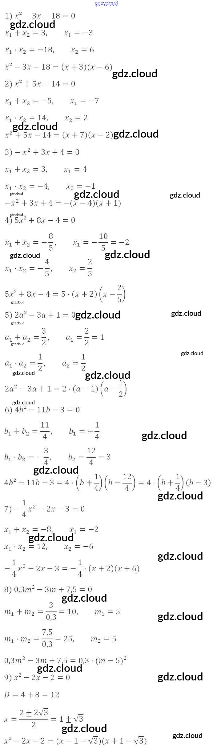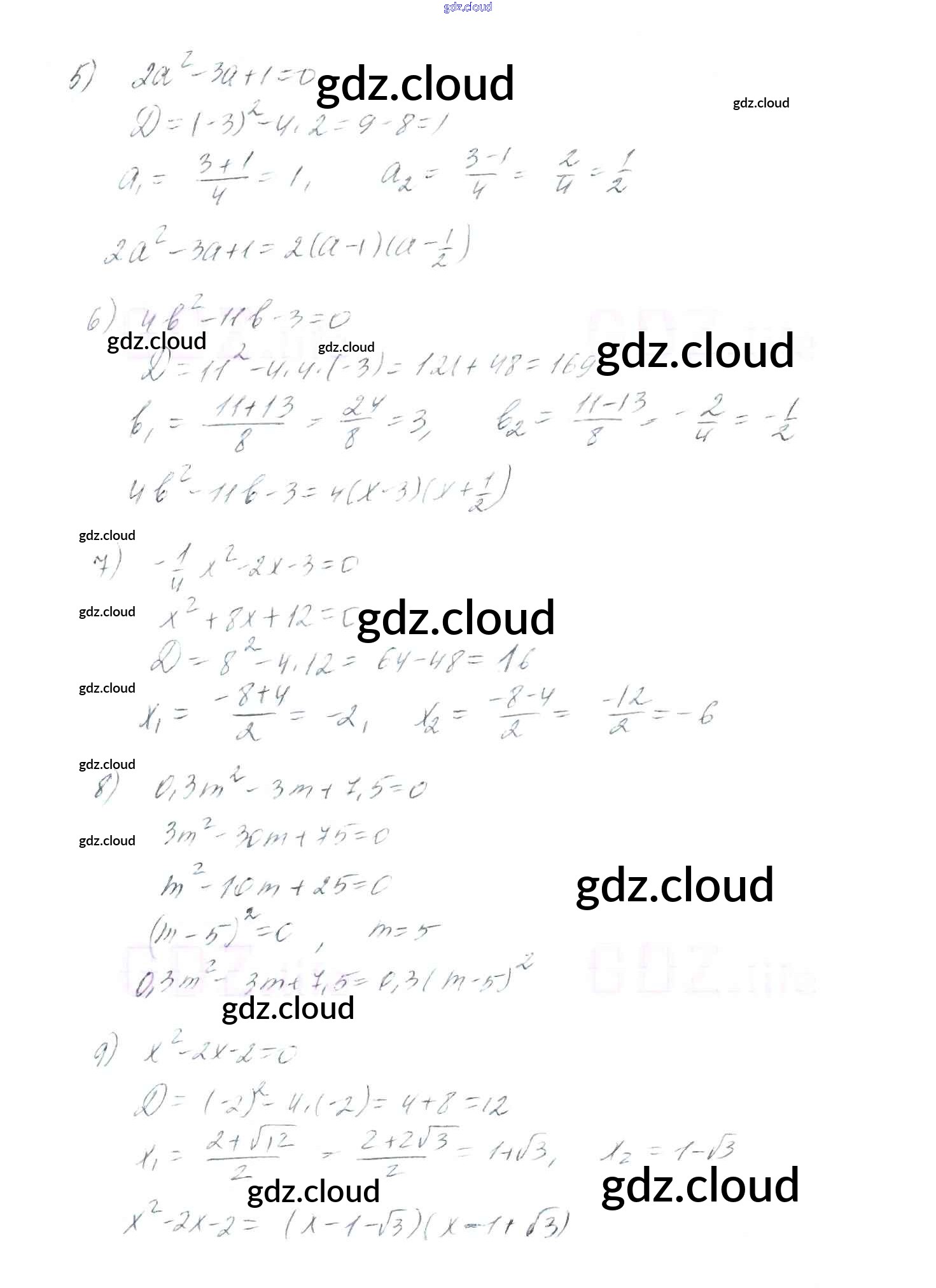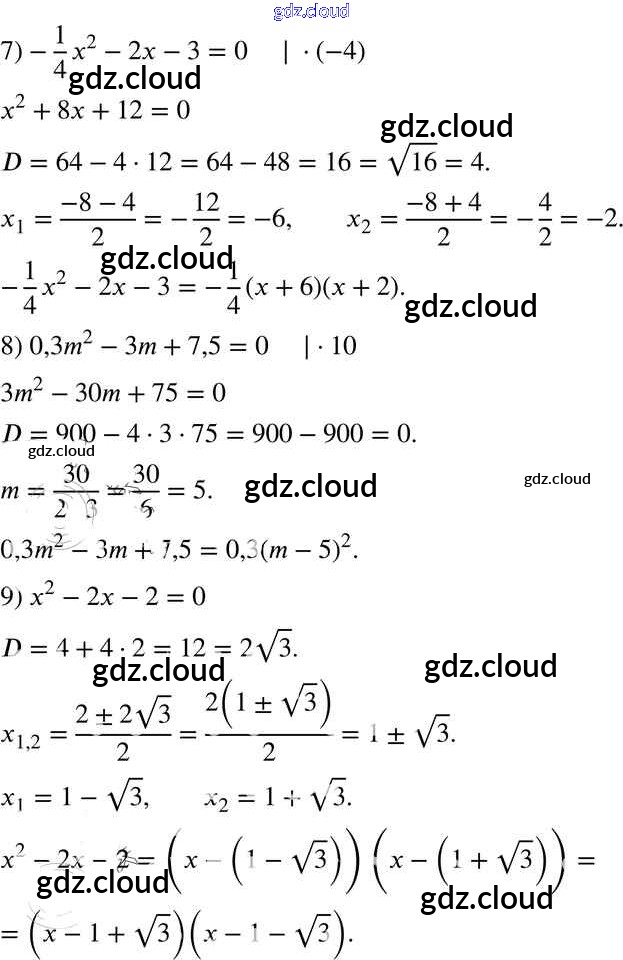 §22. Квадратный трёхчлен Ответы к Главе 3. Квадратные уравнения по Алгебре 8 класс Учебник Мерзляк Алгоритм успеха Вентана-граф