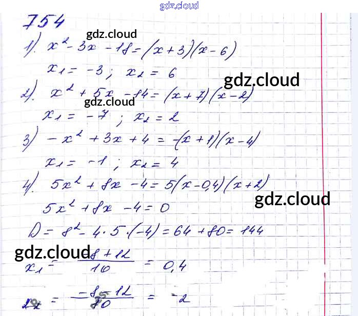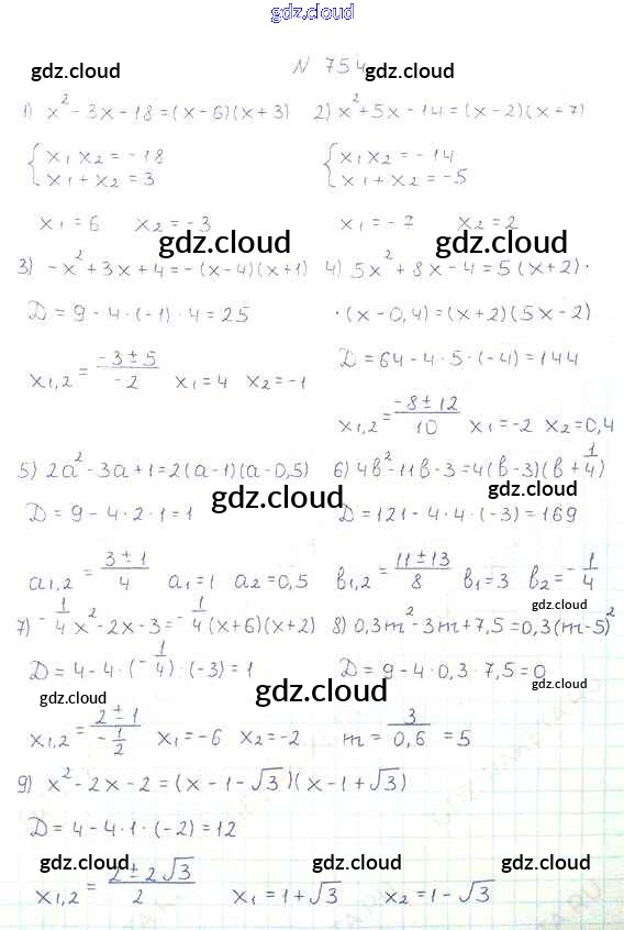 Ответ на задание 754 Учебник Алгебра за 8 (восьмой) класс Мерзляк, Полонский, Якир Алгоритм успеха 2016