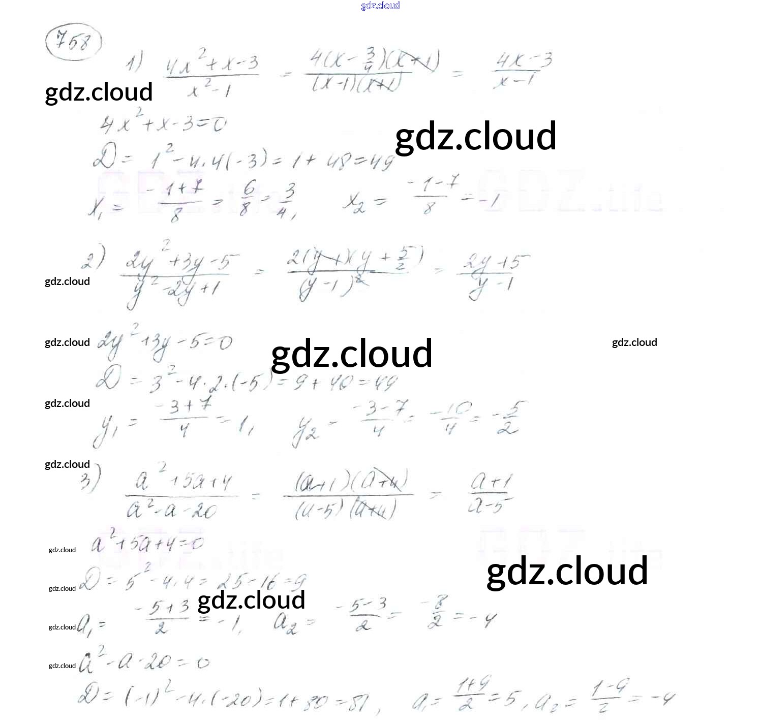 Ответ на задание 758 Учебник Алгебра за 8 (восьмой) класс Мерзляк, Полонский, Якир Алгоритм успеха 2016