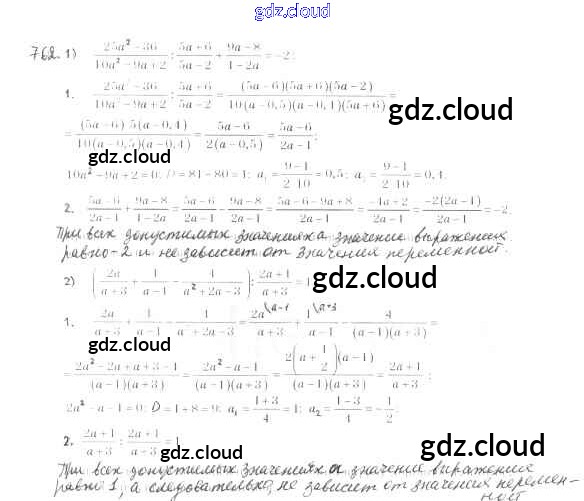 Ответ на задание 762 Учебник Алгебра за 8 (восьмой) класс Мерзляк, Полонский, Якир Алгоритм успеха 2016
