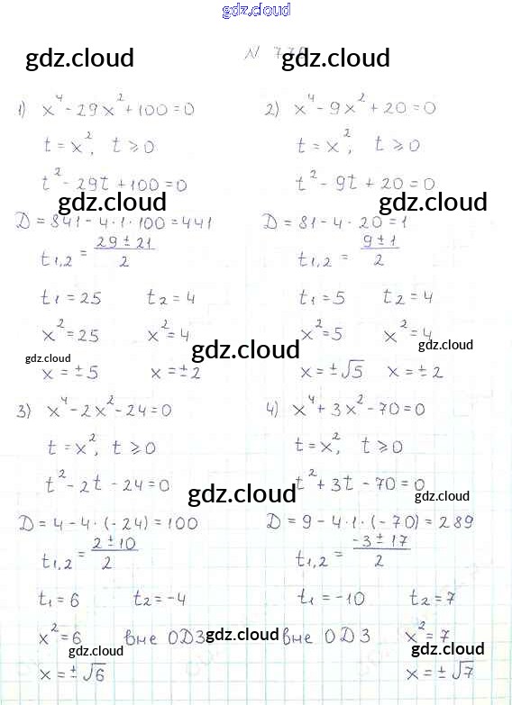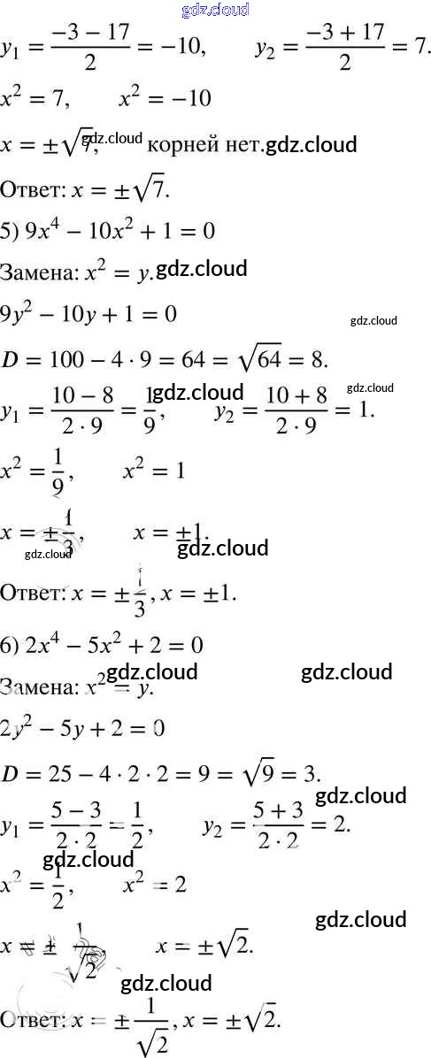 §23. Решение уравнений, сводящихся к квадратным уравнениям Ответы к Главе 3. Квадратные уравнения по Алгебре 8 класс Учебник Мерзляк Алгоритм успеха Вентана-граф
