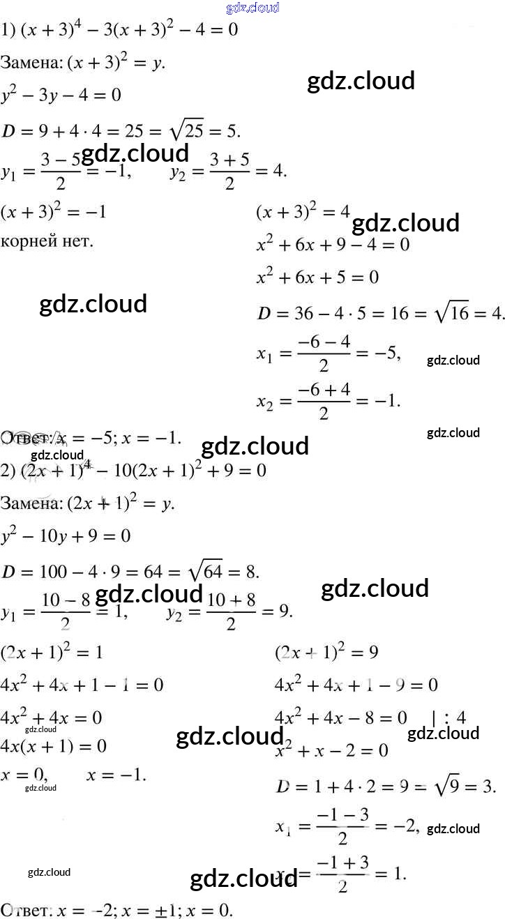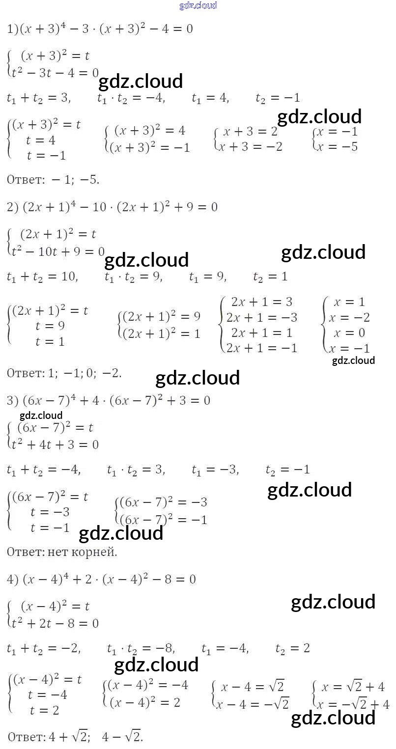§23. Решение уравнений, сводящихся к квадратным уравнениям Ответы к Главе 3. Квадратные уравнения по Алгебре 8 класс Учебник Мерзляк Алгоритм успеха Вентана-граф