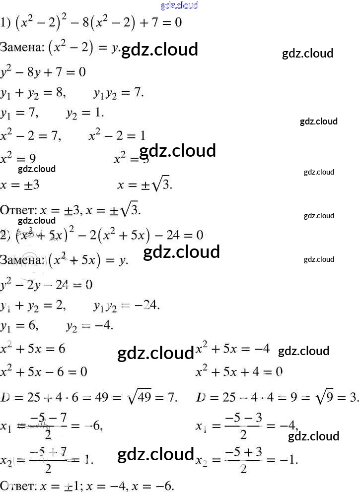 §23. Решение уравнений, сводящихся к квадратным уравнениям Ответы к Главе 3. Квадратные уравнения по Алгебре 8 класс Учебник Мерзляк Алгоритм успеха Вентана-граф