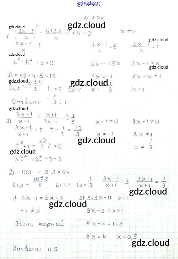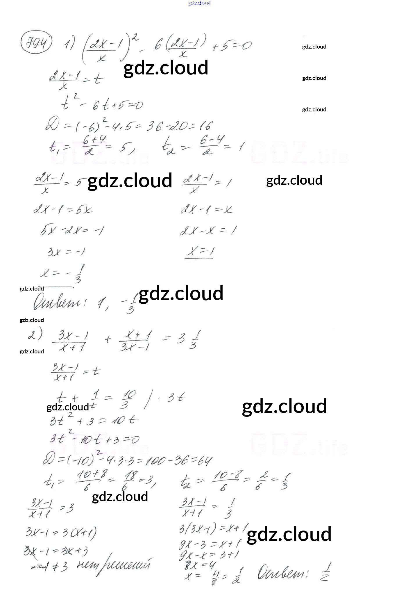 Ответ на задание 794 Учебник Алгебра за 8 (восьмой) класс Мерзляк, Полонский, Якир Алгоритм успеха 2016