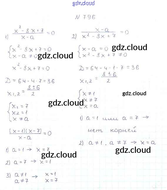 Ответ на задание 796 Учебник Алгебра за 8 (восьмой) класс Мерзляк, Полонский, Якир Алгоритм успеха 2016