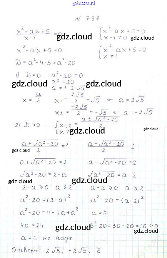 Ответ на задание 797 Учебник Алгебра за 8 (восьмой) класс Мерзляк, Полонский, Якир Алгоритм успеха 2016