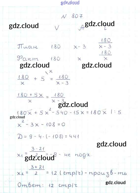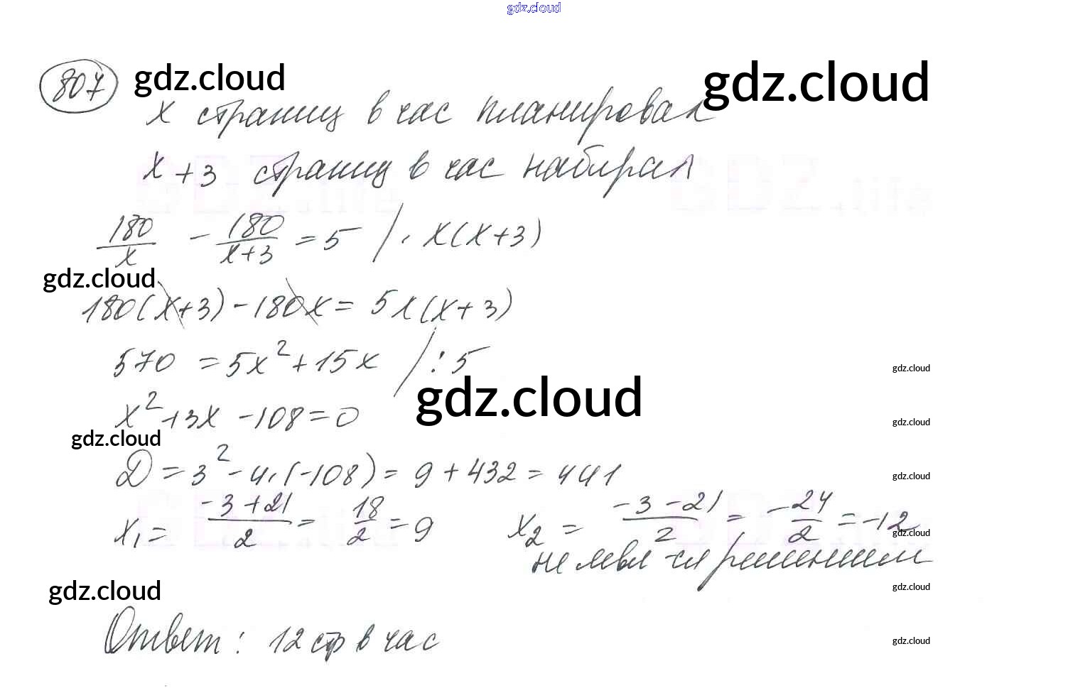 Ответ на задание 807 Учебник Алгебра за 8 (восьмой) класс Мерзляк, Полонский, Якир Алгоритм успеха 2016