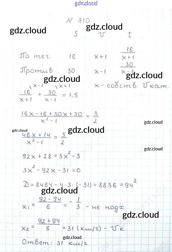 Ответ на задание 810 Учебник Алгебра за 8 (восьмой) класс Мерзляк, Полонский, Якир Алгоритм успеха 2016
