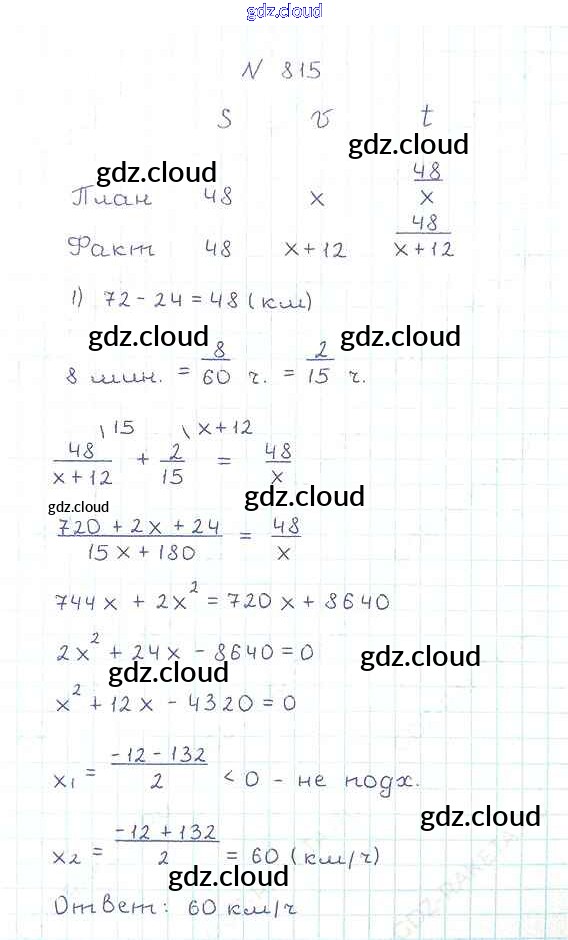 Ответ на задание 815 Учебник Алгебра за 8 (восьмой) класс Мерзляк, Полонский, Якир Алгоритм успеха 2016