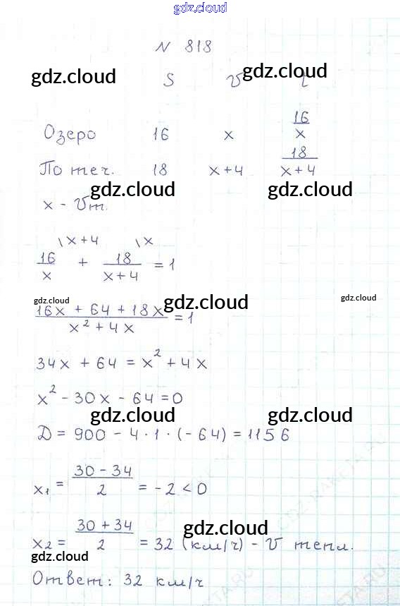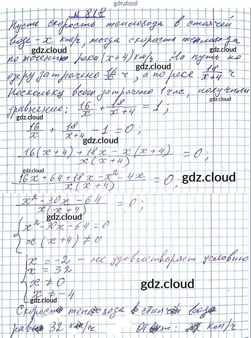 Ответ на задание 818 Учебник Алгебра за 8 (восьмой) класс Мерзляк, Полонский, Якир Алгоритм успеха 2016