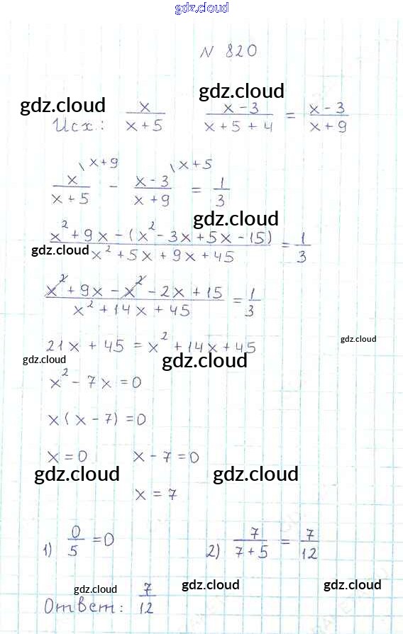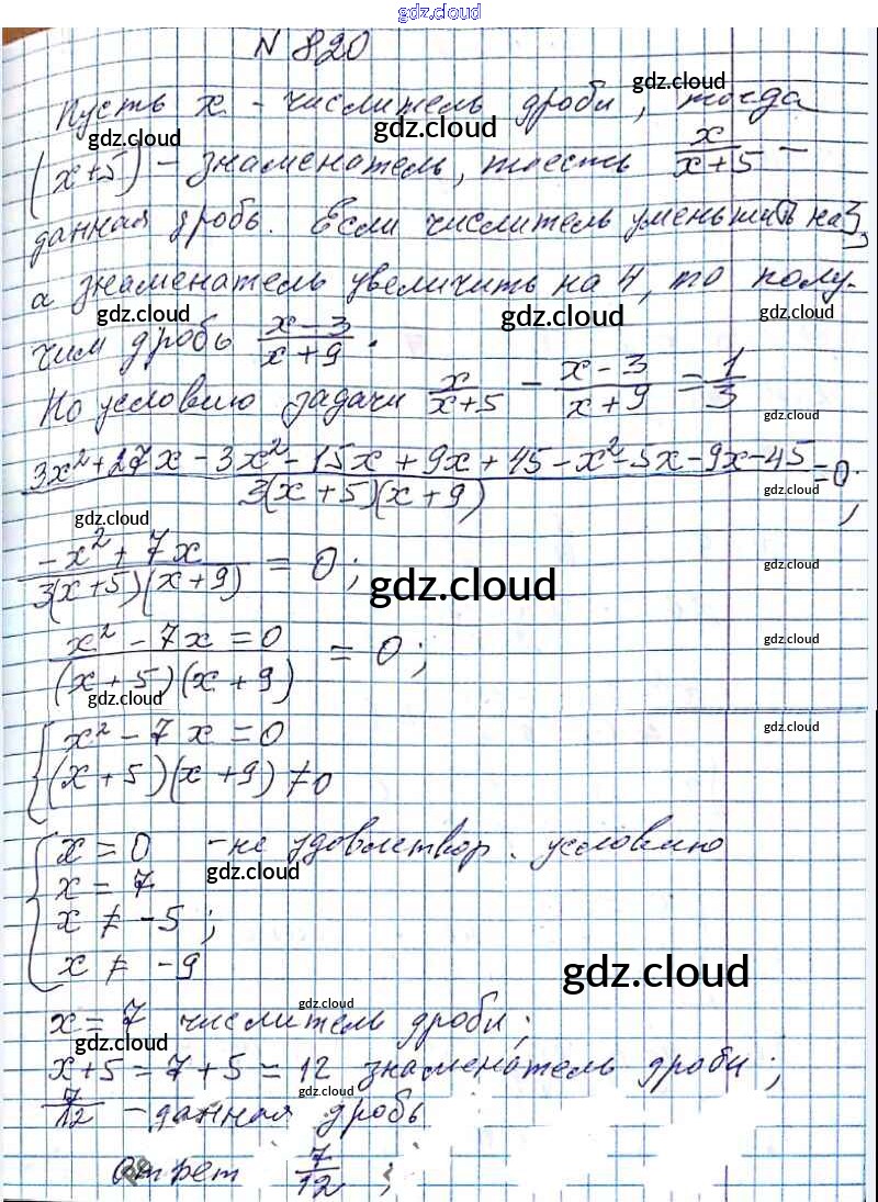 Ответ на задание 820 Учебник Алгебра за 8 (восьмой) класс Мерзляк, Полонский, Якир Алгоритм успеха 2016