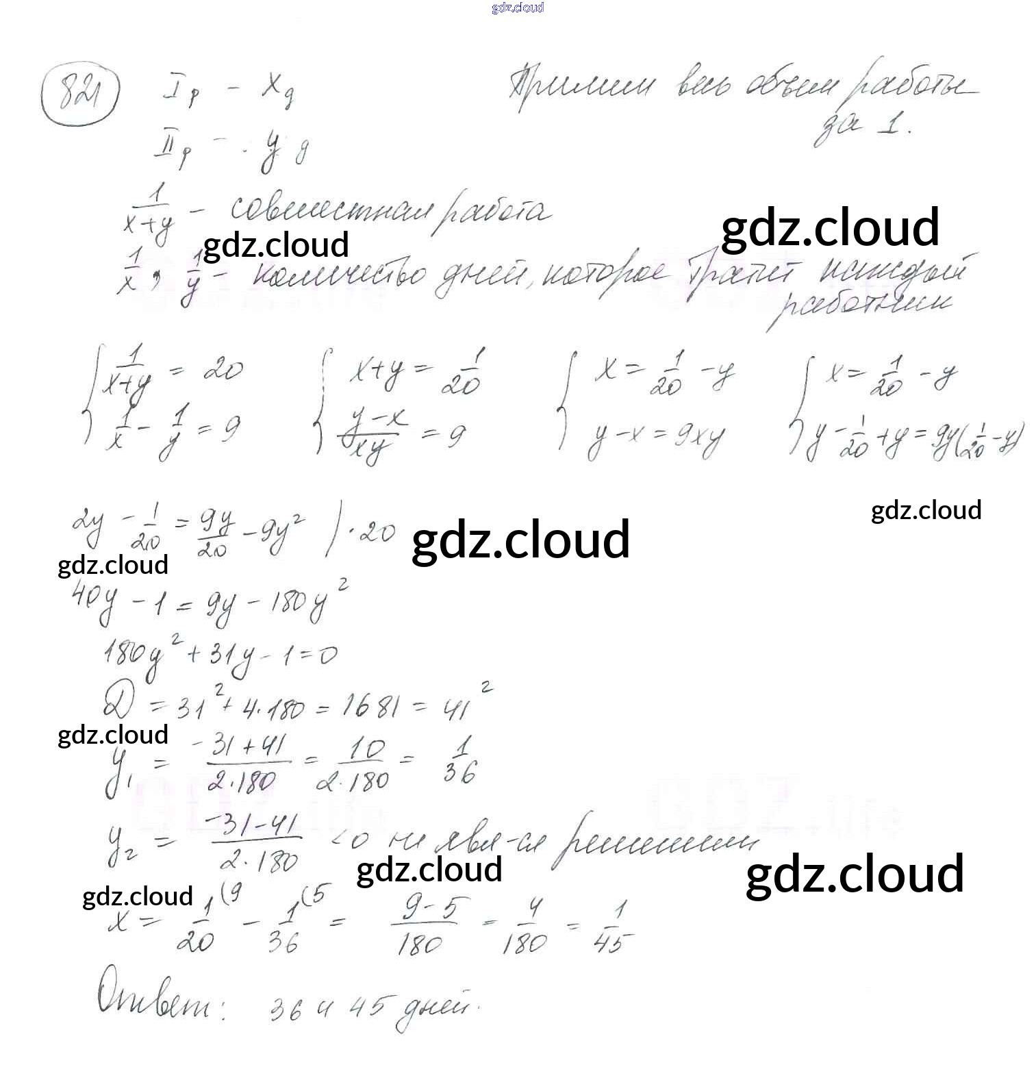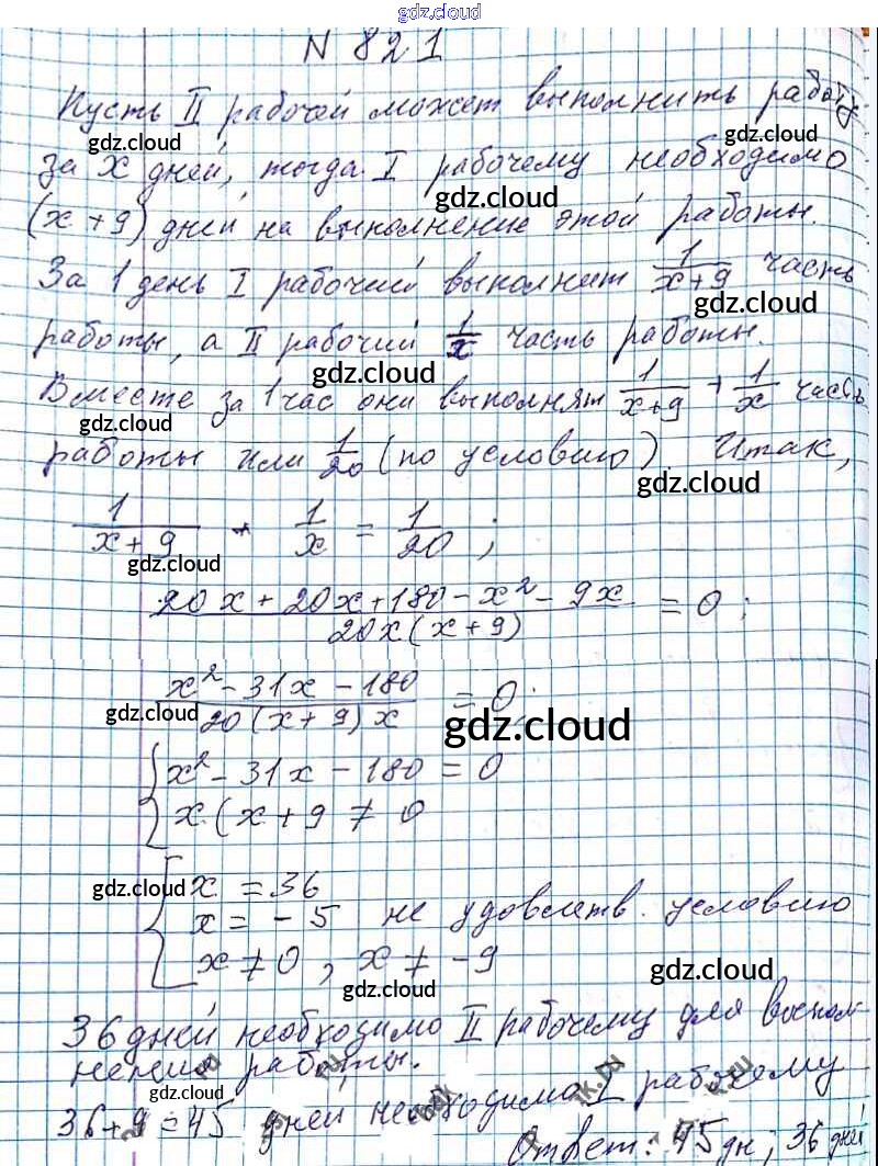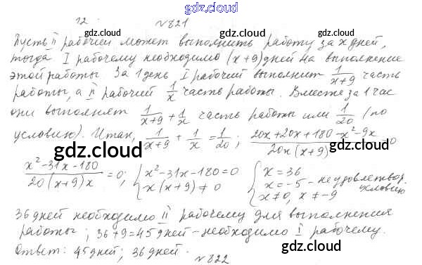 Ответ на задание 821 Учебник Алгебра за 8 (восьмой) класс Мерзляк, Полонский, Якир Алгоритм успеха 2016